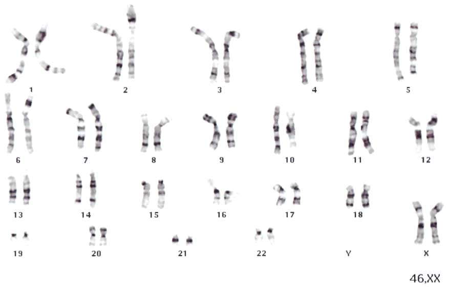Chromosomen und Diagnostik. Geübte Zytogenetische TechnikerInnen zählen die Chromosomen in der Metaphase nicht einfach durch, sondern achten auch auf die Form der Chromosomen. Die Darstellung der Chromosomen aus Zellkulturen gibt einen Nachweis von Veränderungen im Genom. Ein Karyogramm mit der geordneten Darstellung der Einzelchromsomen wird durch praktische Übungen erläutert. Die notwendigen Arbeitschritte zur Erstellung eines Karyogramm mit der geordneten Darstellung der Einzelchromsomen werden bei biobioseminars durch praktische Übungen erläutert.